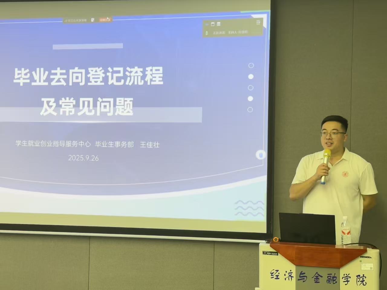 王佳壮围绕就业签约关键事宜作分享,简要介绍就业平台细化功能,详细梳理就业推荐表填写、网签等全流程、各环节的要求。结合案例拆解操作要点与注意事项,提醒同学们关注生源信息确认、就业信息录入、三方协议签署等环节的时效性与准确性。他向同学们公布了学校就业中心的办事流程和联系方式,为同学们提供最便捷的就业服务。