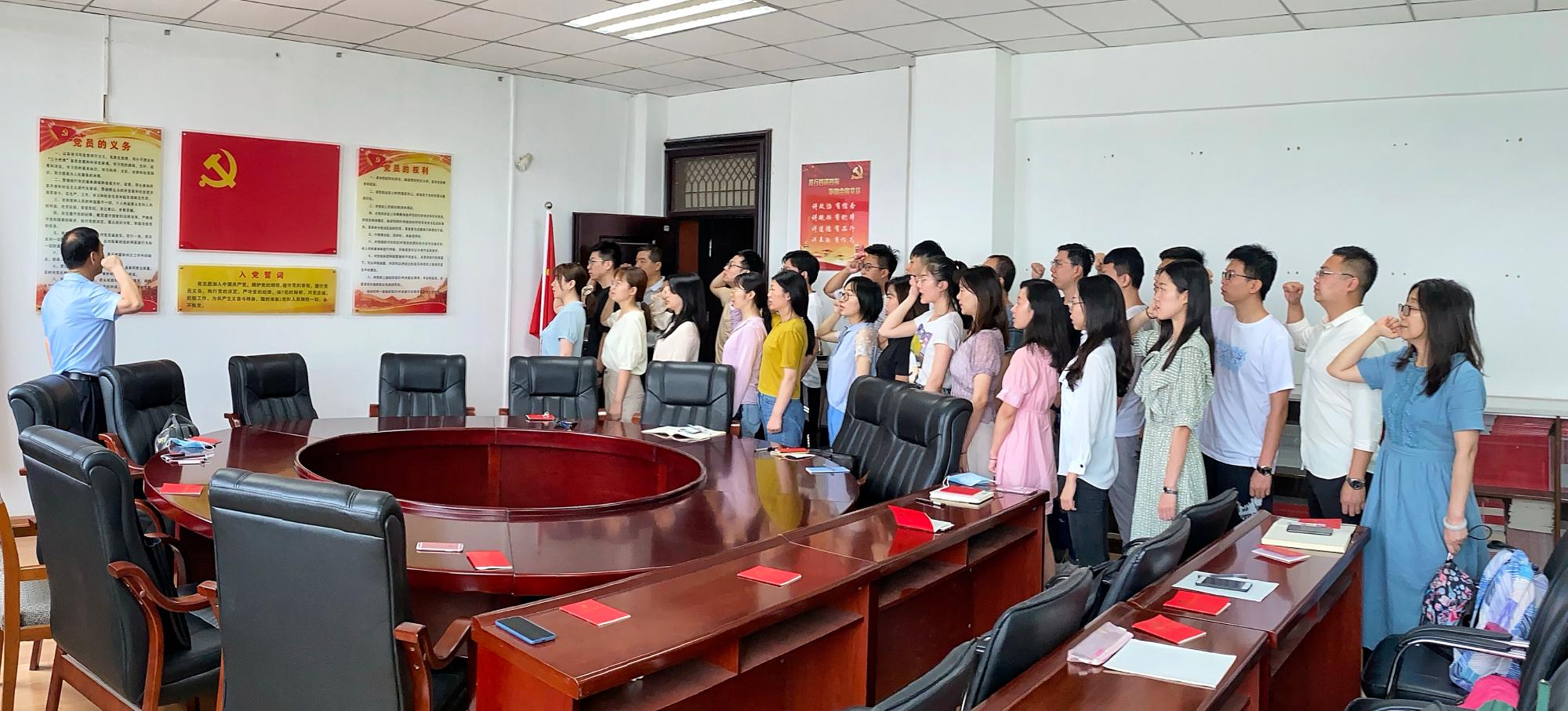 为庆祝建党99周年, 7月1日,91视频党委组织了新发展的师生党员,在学院党员之家举行了入党宣誓活动。院党委书记宋丽颖、党委副书记周建伦、辅导员王平、党务秘书周可心老师参加宣誓活动。活动由周建伦副书记主持。