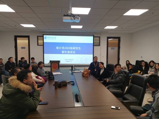 会议伊始,李聪教授先向大家介绍了统计系的专业、师资力量、科研项目以及就业率等基本情况,然后对在座的各位教授老师进行了简单介绍;接下来,同学们积极提问关于学习科研方面的问题,严明义教授提出,作为统计学的学生,要至少学会使用MATLAB、R、stata等统计软件中的一个,能够把理论和技术结合;屈小娥老师强调,博士研究生要关注学科前沿问题,结合社会现实,发扬创新精神,在一年级就定好方向,沿着方向来写论文;王文涛老师告诉我们要学会使用数据库、培养查找文献、使用数据库的能力;最后,李聪教授从科研学习、生活安全方面对此次座谈会进行了总结,希望广大新生能够珍惜研究生时光,不断增强自己的综合素质,以迎接未来的挑战。