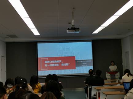贺舒靖同学宣讲结束后,王老师进行了简短的总结,称赞这一宣讲以十五分钟的篇幅实现了角度上的深挖掘,以点带面地展现了中国精神。他指出,从红船精神到抗疫精神,所体现出来的深刻含义大家要牢记在心中,要为今后学习工作树立心中的理想信念标杆。