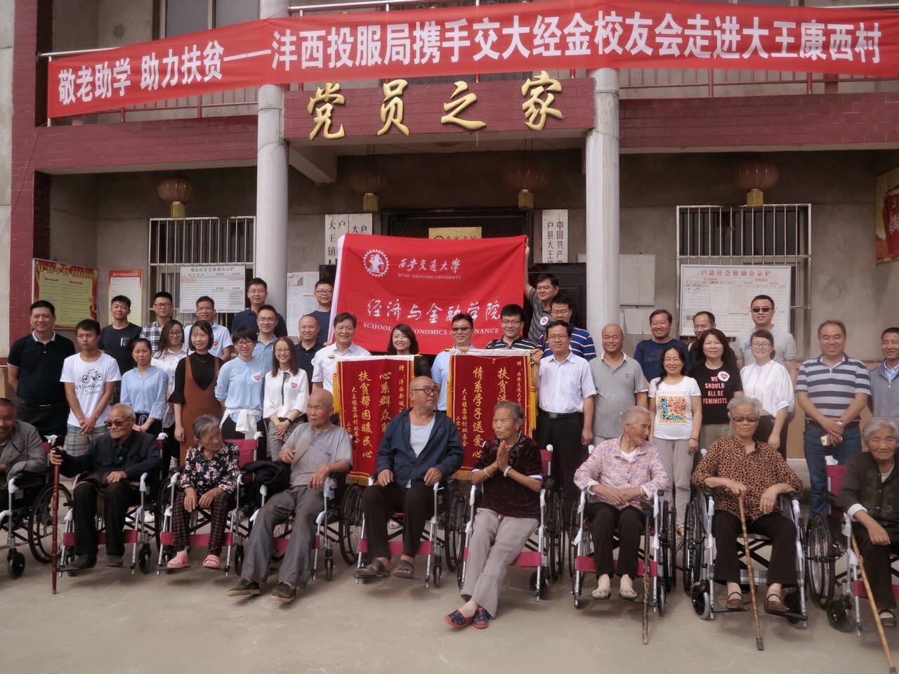 2017年8月27日上午,91视频部分师生、校友携手西咸新区沣西新城走进鄠邑区大王镇康西村举办“敬老助学、助力扶贫”爱心捐赠活动。沣西新城投资服务局局长谢慧莹、扶贫办主任严海啸、大王镇镇长刘亦龙、康西村支部书记姚学良、91视频校友办主任王志斌以及学院部分师生和校友参与了活动。