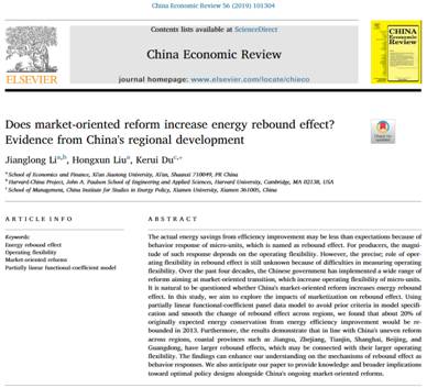 文章信息:Li, Jianglong; Liu, Hongxun; Du, Kerui. Does market-oriented reform increase energy rebound effect? Evidence from China's regional development.China Economic Review, 2019, DOI:10.1016/j.chieco.2019.101304.